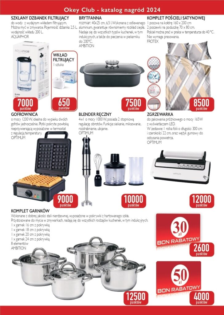 Posiadając odpowiednią ilość punktów na karcie OKEY Club w dowolnym momencie masz możliwość odebrania nagrody z katalogu nagród. Wszystkie nagrody dostępne są w sklepie.