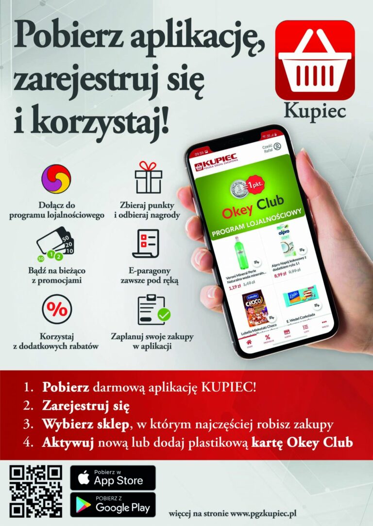 Pamiętaj o zapoznaniu się z regulaminem Programu Lojalnościowego OKEY Club (pobierz), który dostępny jest w sklepie oraz na stronie www.pgzkupiec.pl.